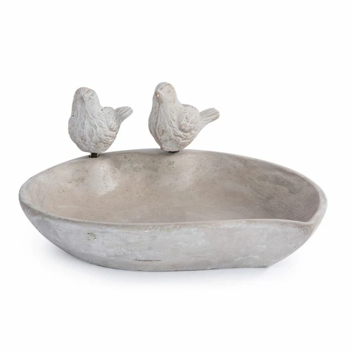 The Licony Bird Bath is made from smooth concrete which gives the bowl a beautiful modern appearance. Shaped like a shallow tear drop, the dish also features two decorative birds.