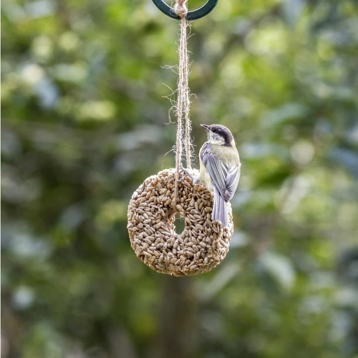 This ring of sunflower cores is full of energy. In addition, the birds do not have to waste time peeling the seeds and can eat from this high-calorie snack.